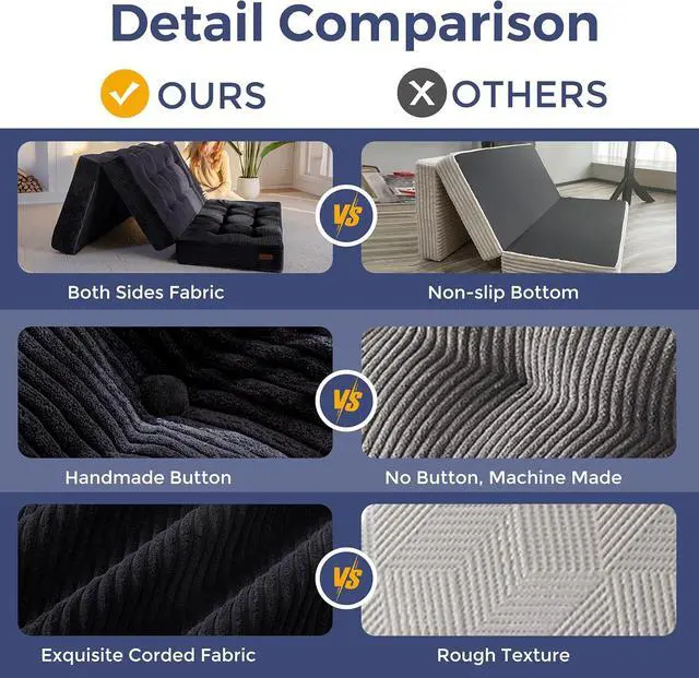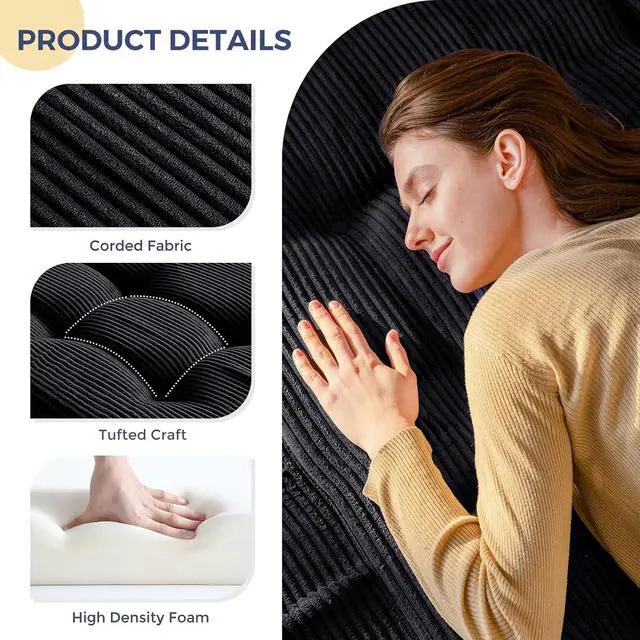 3. Tufted Craft Design: The topper of the foldable triple-fold mattress, made of ultra-soft and breathable corduroy fabric on the top, can keep you feeling fresh. The tufted crafting design adds a personalized style to the foldable mattress and also brings fun to your life