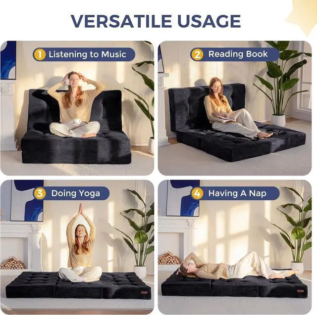 4. Multiple Usages: This triple-fold mattress can be used as an indoor leisure cushion, which can be used as a yoga mattress, a rest and snooze sleeping mattress, a children's play mattress and many other uses to meet your needs in different occasions. Its simple and generous design is also suitable for a variety of home decorating styles, adding fun to life