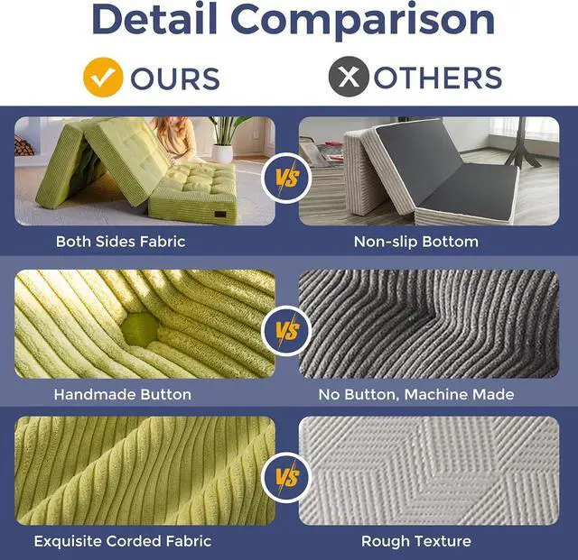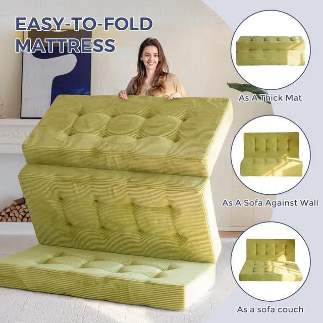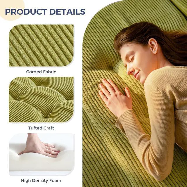 Tufted Craft Design: The topper of the foldable triple-fold mattress, made of ultra-soft and breathable corduroy fabric on the top, can keep you feeling fresh. The tufted crafting design adds a personalized style to the foldable mattress and also brings fun to your life