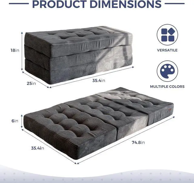 Tufted Craft Design: The topper of the foldable triple-fold mattress, made of ultra-soft and breathable corduroy fabric on the top, can keep you feeling fresh. The tufted crafting design adds a personalized style to the foldable mattress and also brings fun to your life