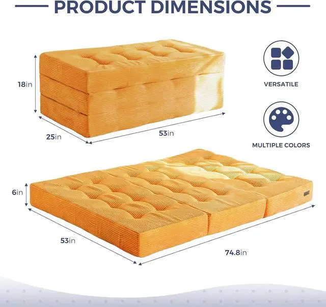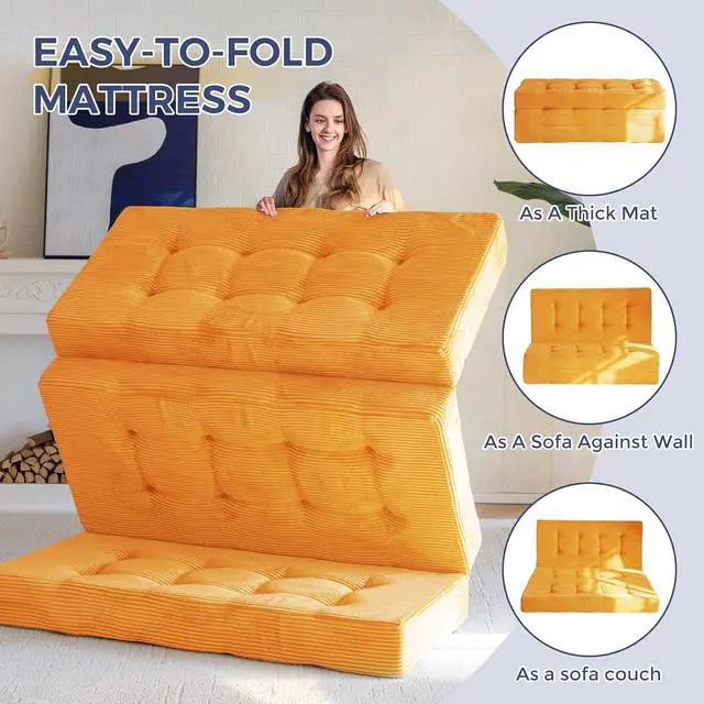 3. Tufted Craft Design: The topper of the foldable triple-fold mattress, made of ultra-soft and breathable corduroy fabric on the top, can keep you feeling fresh. The tufted crafting design adds a personalized style to the foldable mattress and also brings fun to your life
