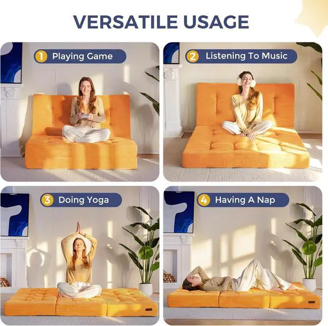 4. Multiple Usages: This triple-fold mattress can be used as an indoor leisure cushion, which can be used as a yoga mattress, a rest and snooze sleeping mattress, a children's play mattress and many other uses to meet your needs in different occasions. Its simple and generous design is also suitable for a variety of home decorating styles, adding fun to life