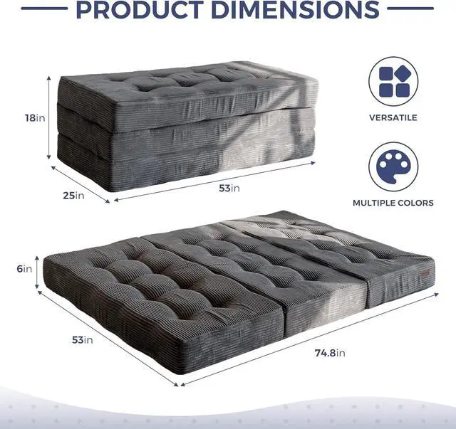Tufted Craft Design: The topper of the foldable triple-fold mattress, made of ultra-soft and breathable corduroy fabric on the top, can keep you feeling fresh. The tufted crafting design adds a personalized style to the foldable mattress and also brings fun to your life