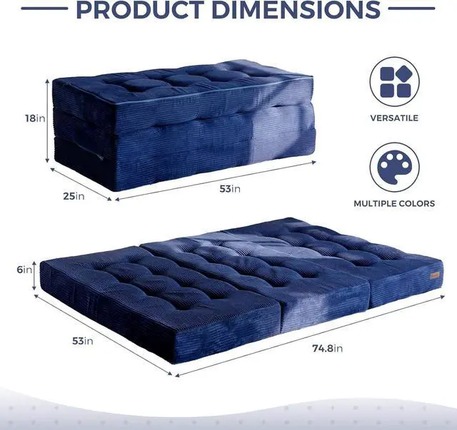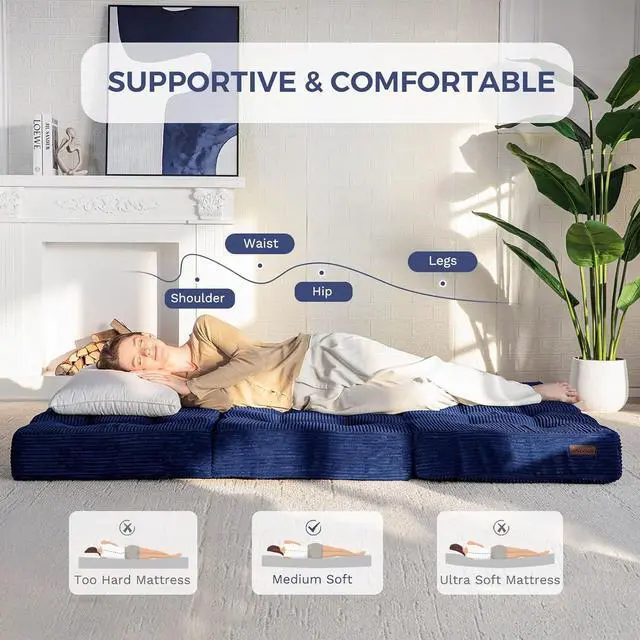 Tufted Craft Design: The topper of the foldable triple-fold mattress, made of ultra-soft and breathable corduroy fabric on the top, can keep you feeling fresh. The tufted crafting design adds a personalized style to the foldable mattress and also brings fun to your life