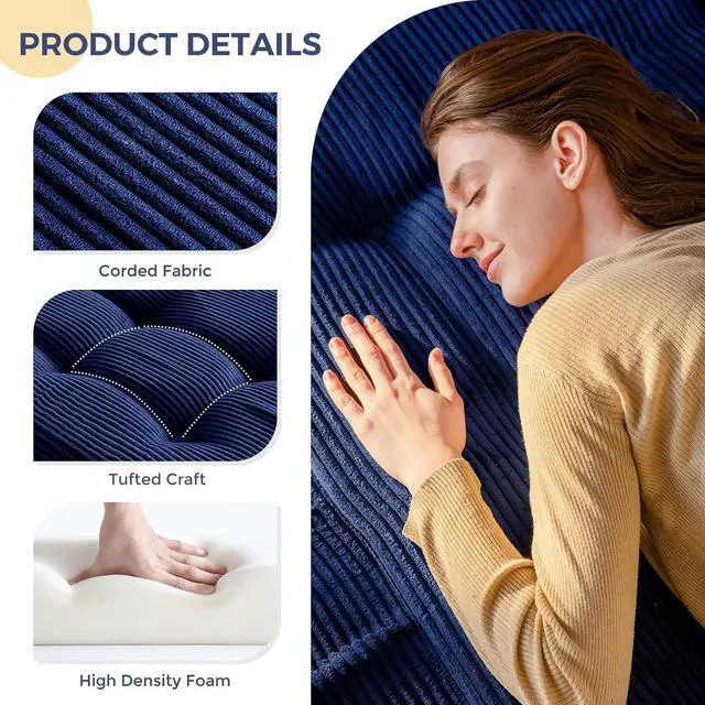 Tufted Craft Design: The topper of the foldable triple-fold mattress, made of ultra-soft and breathable corduroy fabric on the top, can keep you feeling fresh. The tufted crafting design adds a personalized style to the foldable mattress and also brings fun to your life