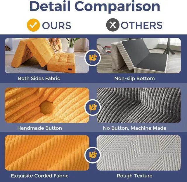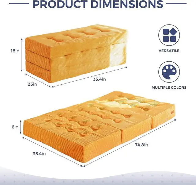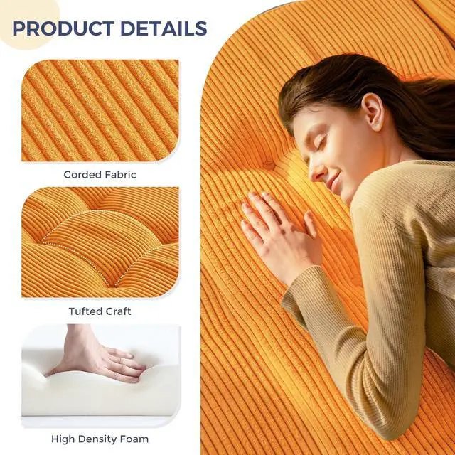 Tufted Craft Design: The topper of the foldable triple-fold mattress, made of ultra-soft and breathable corduroy fabric on the top, can keep you feeling fresh. The tufted crafting design adds a personalized style to the foldable mattress and also brings fun to your life