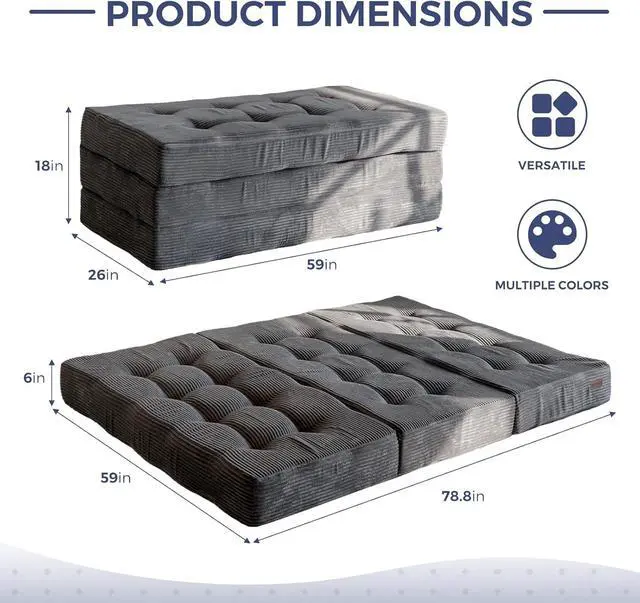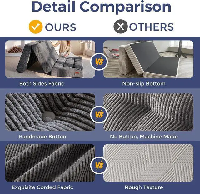 Tufted Craft Design: The topper of the foldable triple-fold mattress, made of ultra-soft and breathable corduroy fabric on the top, can keep you feeling fresh. The tufted crafting design adds a personalized style to the foldable mattress and also brings fun to your life