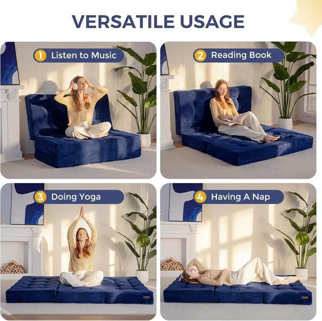 Tri-Fold Mattress: Our foldable triple-fold mattress can be easily unfolded into a spacious and comfortable seat cushion. When folded, it is compact and takes up little space. Whether it's for indoor lounging, picnics, yoga, or everyday home use, it's effortless to use and allows you to enjoy comfort anytime, anywhere