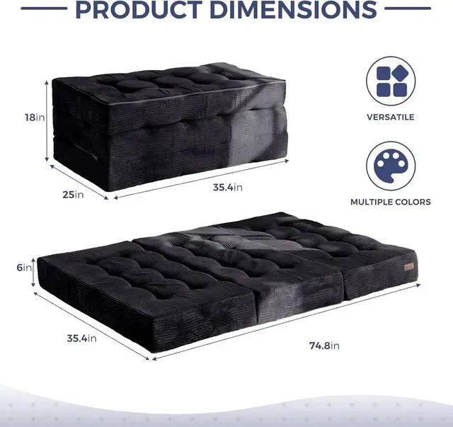 Tufted Craft Design: The topper of the foldable triple-fold mattress, made of ultra-soft and breathable corduroy fabric on the top, can keep you feeling fresh. The tufted crafting design adds a personalized style to the foldable mattress and also brings fun to your life