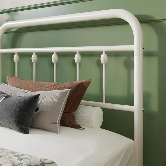 Victorian Design: With its sinuous curves and intricate beadwork, this metal bed frame captures the romance of Victorian design while embracing vintage character. A chameleon in any space, it enhances modern minimalism, rustic farmhouse warmth, or traditional opulence