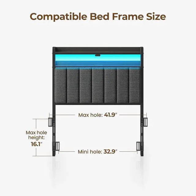 Rolanstar Headboard for Twin Size Bed with Storage, 60,000 DIY Color of LED Light, Head Board with USB & Type C Port, Height Adjustable, Black Upholstered Cabeceras de Cama Comfortable Modern, Linen