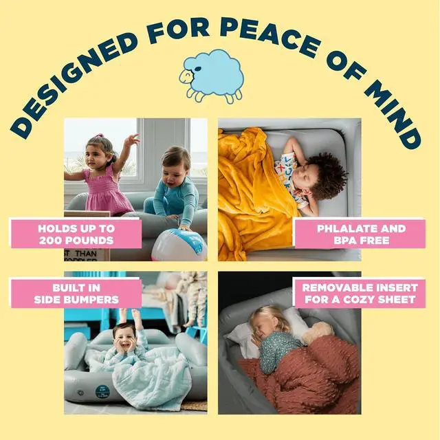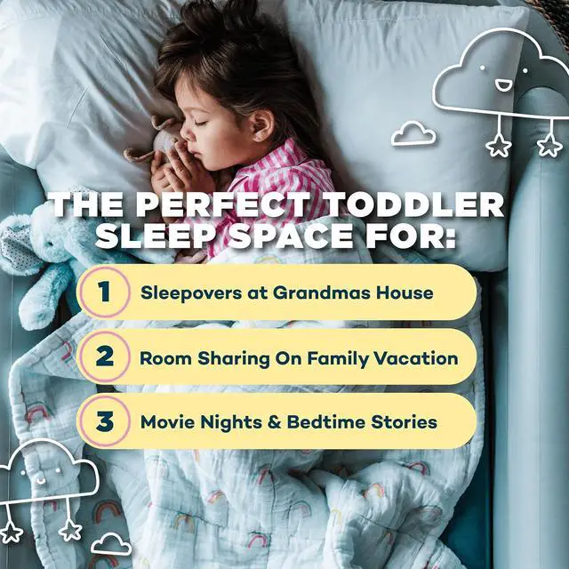 Versatile Usage: Great for sleepovers, visits to Grandma's, vacations, and more, SlumberTot provides a soft-touch sleep surface with integrated side rails, ensuring air-filled comfort and peace of mind for your little ones.