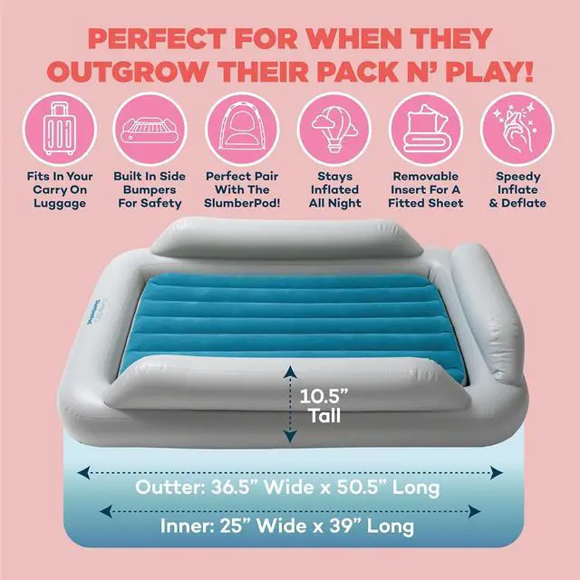 SlumberPod SlumberTot Inflatable Toddler Travel Bed - Portable Kids Air Mattress with Safety Bumpers - Perfectly Sized Ideal for Travel or Home Use - Includes Electric Pump