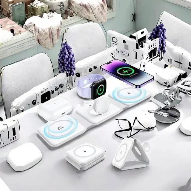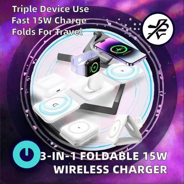 1.High-quality 3-in-1 magnetic fast wireless charging station for multiple devices, including iPhone 16 15 14 13 12 Pro Max IWatch AirPods.