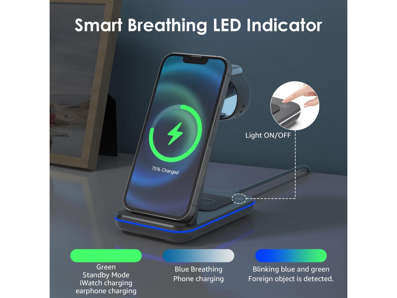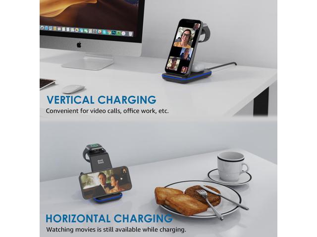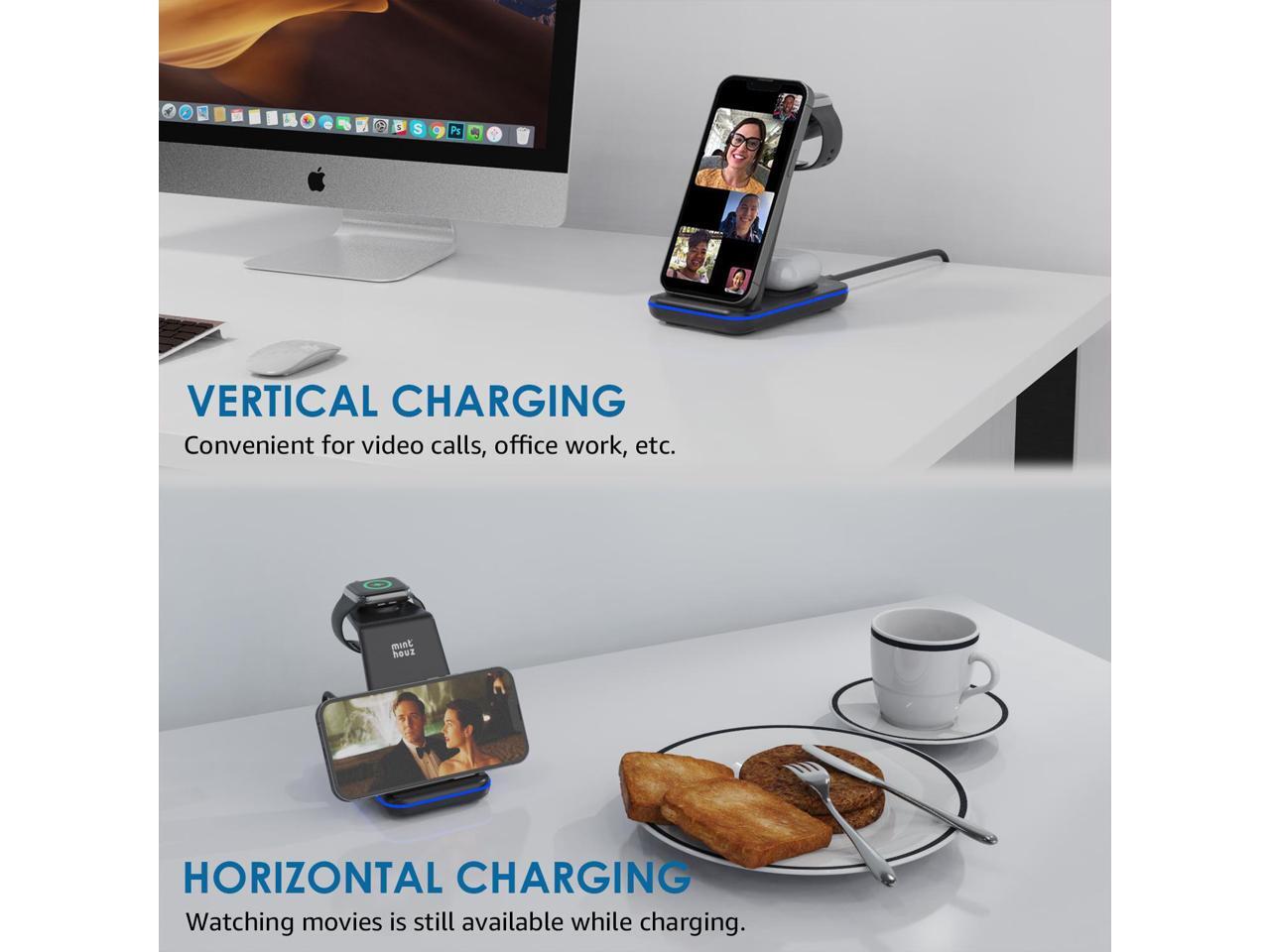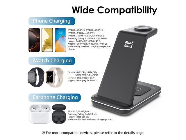 3 in 1 Wireless Charging Station Minthouz wireless charger stand can charge your Apple Watch (Only for iWatch S2 and later), phone and earphones at the same time with an optimal voltage and current value.