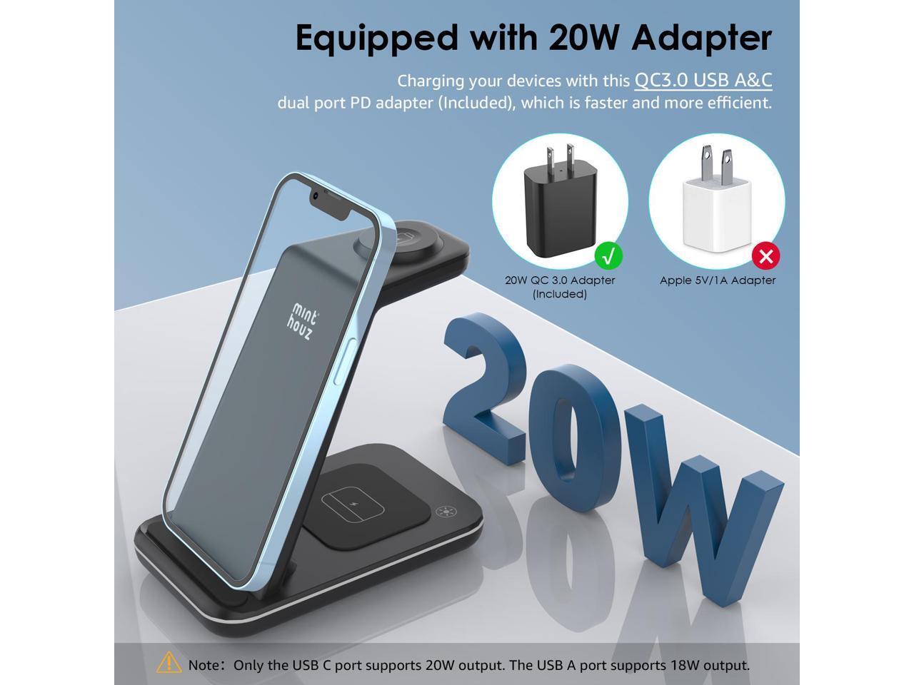 Minthouz Wireless Charger,3 in 1 Fast Wireless Charging Station with 20W Adapter for Multiple Devices Apple Watch, AirPods, Compatible with iPhone 16/15/14/13/12/11 Series, Samsung