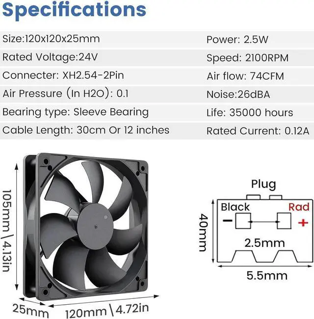 Easy to Install: Our fan comes with a 2-pin XH 2.54 connector and a 30cm cable length, making it easy to install in your PC case.