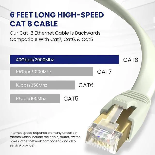High-Speed Cat 8 Cable - Our Cat8 ethernet cable is perfect for streaming, gaming, and more. With up to 40Gbps of speed and 2000 MHz of bandwidth, you' ll be able to stream 4K video, download huge files, and play games without any lag