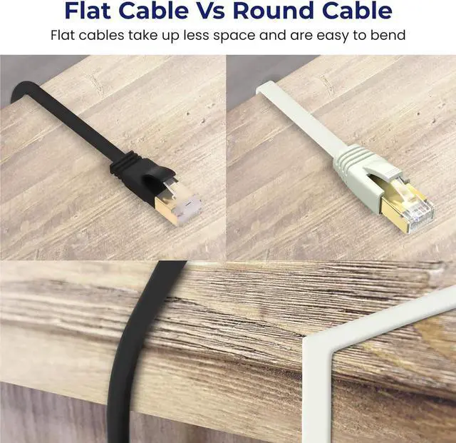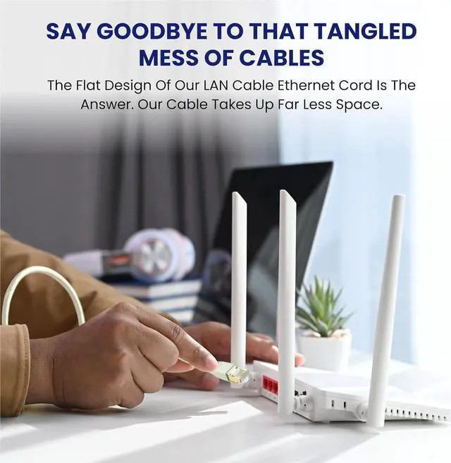 Cut the Cable Clutter - Say goodbye to that tangled mess of cables. The flat design of our LAN cable ethernet cord is the answer. Our cable takes up far less space. Plus, the flexible design makes it easy to tuck away behind furniture