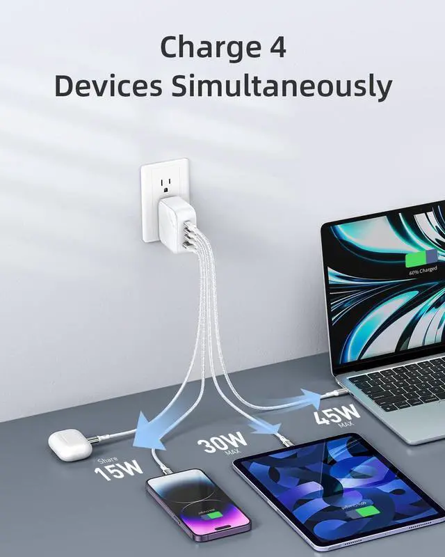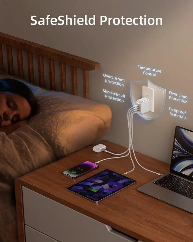 This USB C phone multiport charger is compatible with a variety of devices, thanks to its USB C port. No need to carry multiple chargers anymore - this one does it all. Trust in its reliability and enjoy the convenience of having a powerful charger at your fingertips.