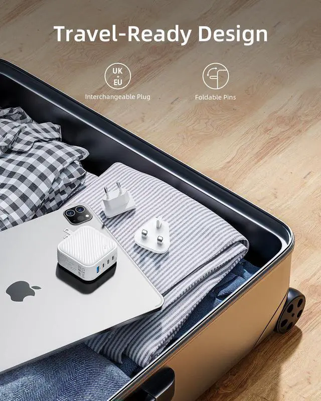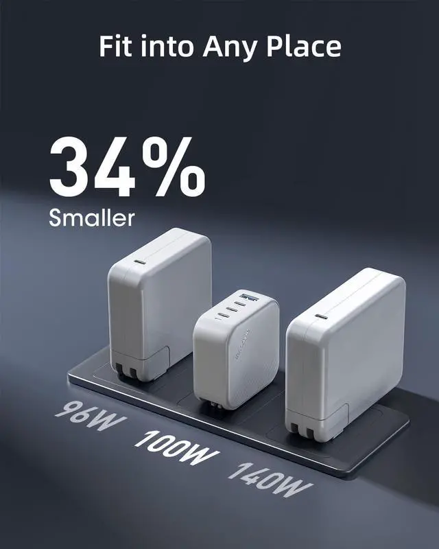 Worried about voltage compatibility when traveling abroad? 100w usb c Gan II charger comes with interchangeable UK and EU pins, accommodating global voltages from 100V to 240V. So whether you're in the UK, Europe, or any other country, you can rely on this charger to keep your devices charged and ready to use.