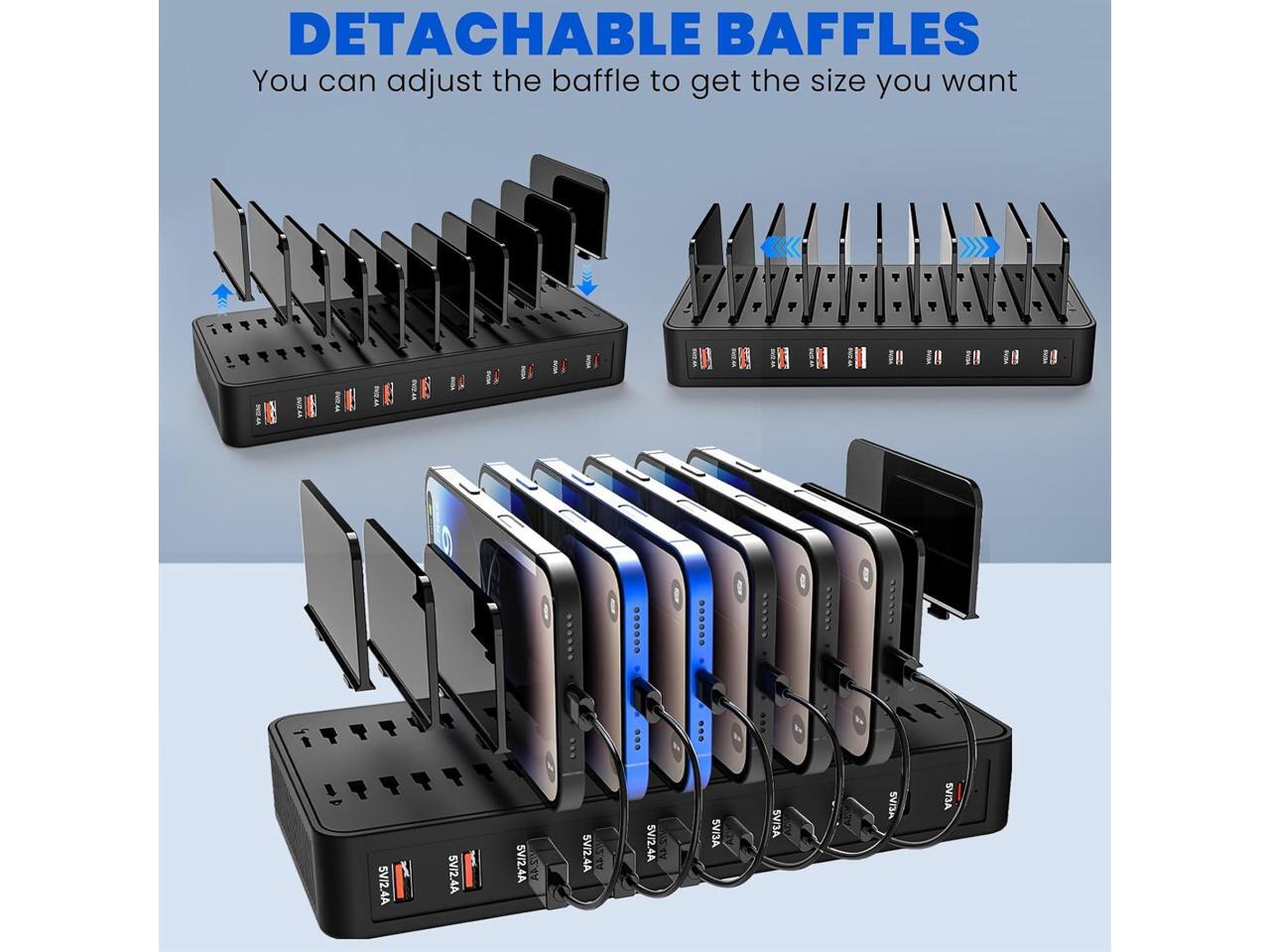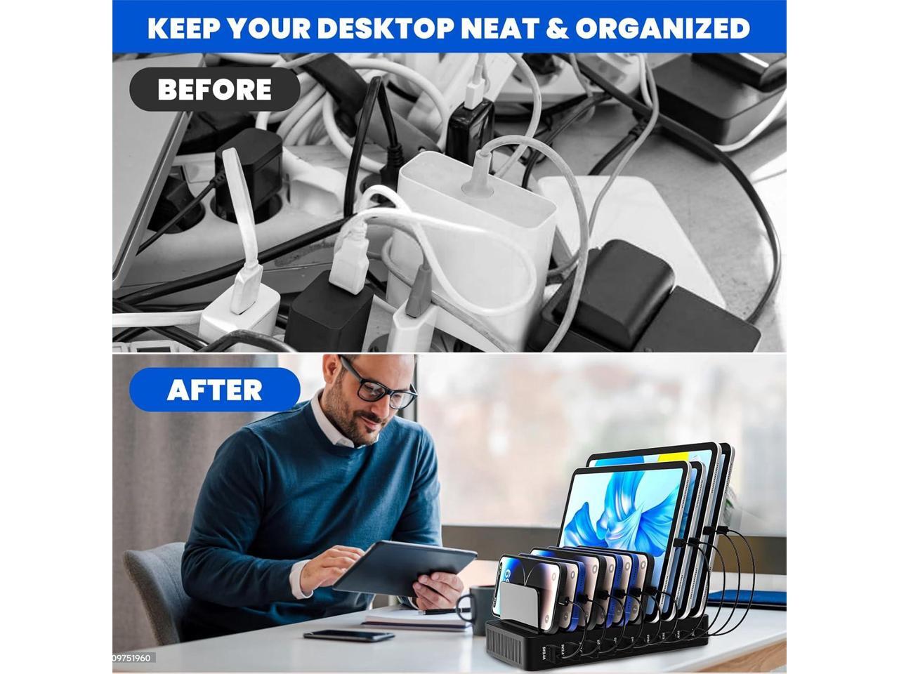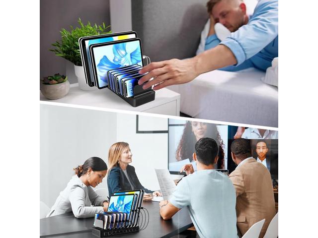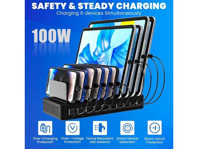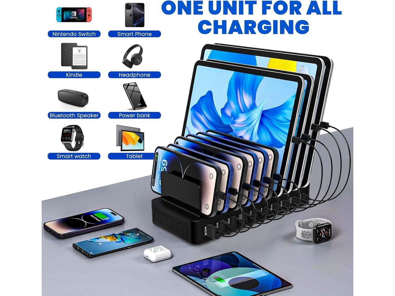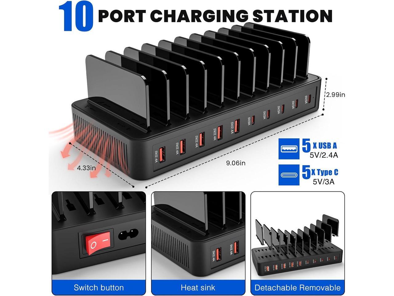 - This multi port usb charging station can charge up to 10 devices simultaneously, with USB A port and Type-C port(Don't support for fast charge),Each port of the ipad charging station for multiple devices recognizes the exact current requirements of connected device