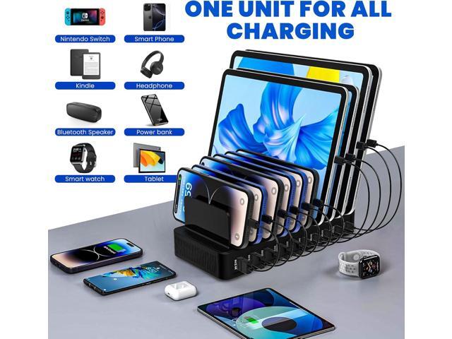 - The multiport USB Charging Station for Multiple devices Apple supports all types of USB and Type-C charging cables, The multi device charging station is compatible with Cell Phone,Tablets, Cameras, E-reader, Bluetooth headsets,kindle,Power Bank, USB fan,MP3 /MP4 player and more. which can meet more use scenarios, such as office, restaurants,hotels,family or party;It is also the perfect practical gift for family and friends.