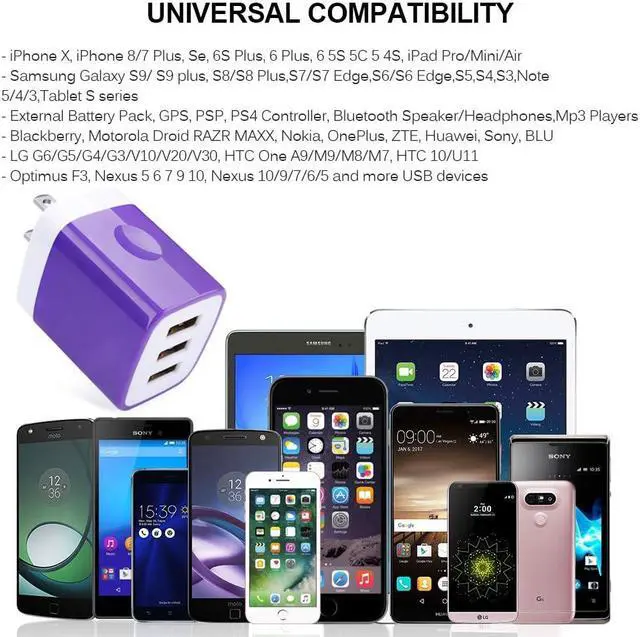 Broad Compatibility: UorMe Wall Charger Plug compatible with Phone X 8 7 6s 6s Plus 6 Plus Galaxy S23 S22 S21 Note 20 10 9 S9 S8 Note 8 S7 S6 Edge S6 Pad iPod Tablet HTC LG G5 G6 V20 V30 V35 and more USB devices.