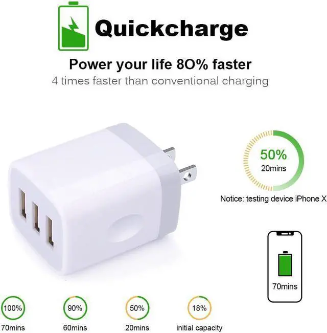 Safe & Quality Reliable: The charger has protection system against over charging over currents and over heating. The charger will automatically stop charging when power is full which can maximumly protect your device. Compatible with multi-species USB devices Such as iPhone 17/17 Pro/17 Pro Max/17 Air/16/16 Pro/16 Pro Max/16 Plus/15/15 Pro/15 Pro Max/15 Plus iPhone 14/14 Pro/ 14 Pro Max/14 Plus iPhone 13/13 Mini/13 Pro/13 Pro Max iPhone12/12 Mini/12 Pro/12 Pro Max iPhone 11/11 Pro/11 Pro Max iPhone SE 1/2 iPhone X/XR/XS/XS Max iPhone 8/8 Plus Galaxy S25/S24/S24 Plus/S24 Ultra/S24FE/S23/S23 Ultra/S23+/S22/S22 Ultra/S22+/S21 Ultra/S21/S20 Ultra/S20/Note 20/Note 20 Ultra/Note 10 +/S10/S10e/S10+/S9/S9+/S8 LG V60 V50 and More USB devices.