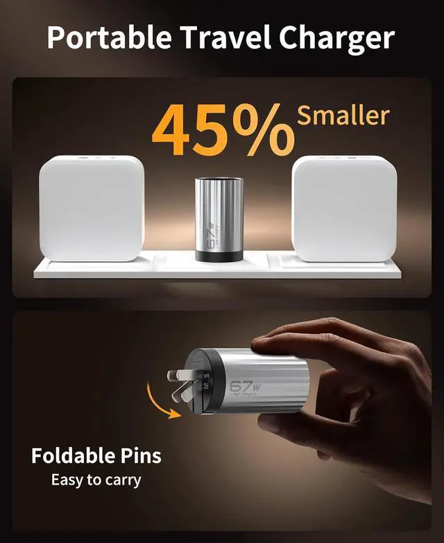 Foldable pins save space and reduce the risk of accidental bumping or breaking delaying the travel charger's life. 100-240V worldwide voltage makes the usb wall charger block perfect for international travel!???????????????????????????? Durable heat-resistant and drop-resistant rugged PC shell internal safeguards with over-current/over-voltage/over-temperature protection to ensure the GaN charger's long-lasting use.