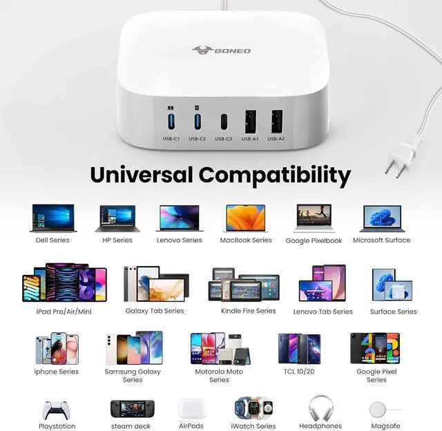 Universal Compatibility: USB-C port and USB-A port charger block for iPhone 16 15 14 13 12 11 Pro Max Mini Plus/ XS Max/ XS/ X/ XR/ 8 Plus/ 8 iPad Pro Air Mini Galaxy S23/S23+/S23 Ultra/ S22/ S22+/ S22 Ultra/ S21/S21+/S21 Ultra/ S21+ 5G S20/ S20 Ultra/ S20+/ S20 FE Note 10/ Note 10 5G Note 20/ 20 Ultra 5G/ S10 5G Galaxy Z Fold 3 5g A90 5G A80 A70 Book S Tab S7/S7+/S8/S8+/S8 Ultra and switch fan speaker lamp etc.