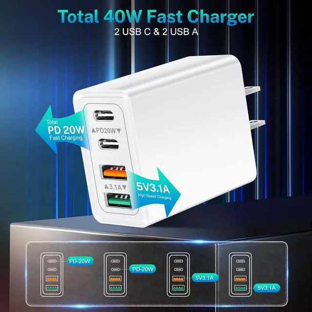 ![Alt view image 7 of 7 - [3 PACK] USB C Charge Wall Charger Block, Fast Charging Block Type C QC3.0 Charging Brick Cube, [4-in-1] Dual Port QC & PD 3.0 USB C Charger Block Compatible for for i-Phone Android Phones Tablet PC..](https://c1.neweggimages.com/productimage/nb640/AMM4S24010406FZNT0A.jpg)