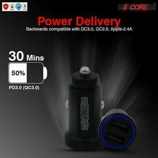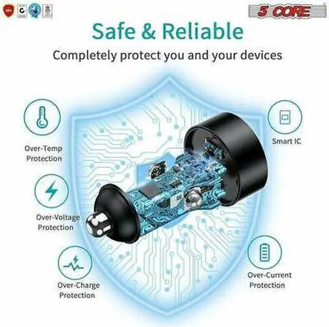Advanced Charging Technology: provide the fastest possible charge up to 4.8 amps or 2.4 amps per port. (Does not support Qualcomm Quick Charge). 5 Core Intelligent circuit design protects against short circuiting; over-heating; over-currents; and over-charging. Charging stops when battery is full. Dual smart USB portsquickly and easily identify your mobile devices; to provide optimal charging efficiency. Compact design for added portability; featuring of input: 12-18V;