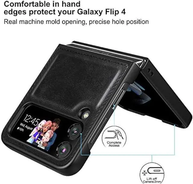 DURABL PROTECTION: Galaxy Z Flip 4 Leather Case is Made of Hard PC PU Leather Back. Classic PU synthetic leather back case stylishly provides an elegant and fashion look and feel. Good quality and great looking case.