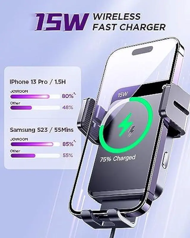 2 In 1 DesignCombined wireless phone charger and car phone mount for a safe hands-free experience. And Joyroom ZS219 phone holder car charger has two installation methods for the dashboard and air vent for you to choose.
