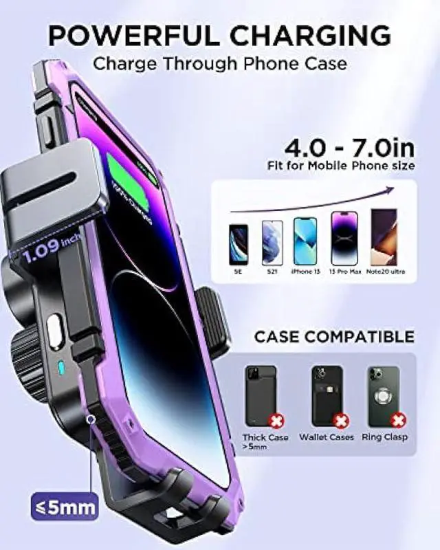 Flexible Angle & Case Friendly With a retractable & foldable bracket and 360° rotatable head, it never blocks your driving sight, you can adjust it to a position that makes you comfortable. Joyroom car mounts wireless charger supports charging through phone cases up to 5mm thick. Please note that cases made of metal, external attachments such as magnets, credit cards, grips, and stands will interfere with charging.