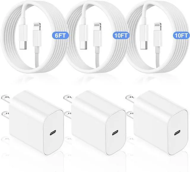 What you get3x20W PD USB C wall charger, 6ft/10ft/10ft USB-C to lightning cable and 12-month, worry-free guarantee. If the product has any quality problem, please contact us, within 24 hours we will provide a 100% satisfactory answer.