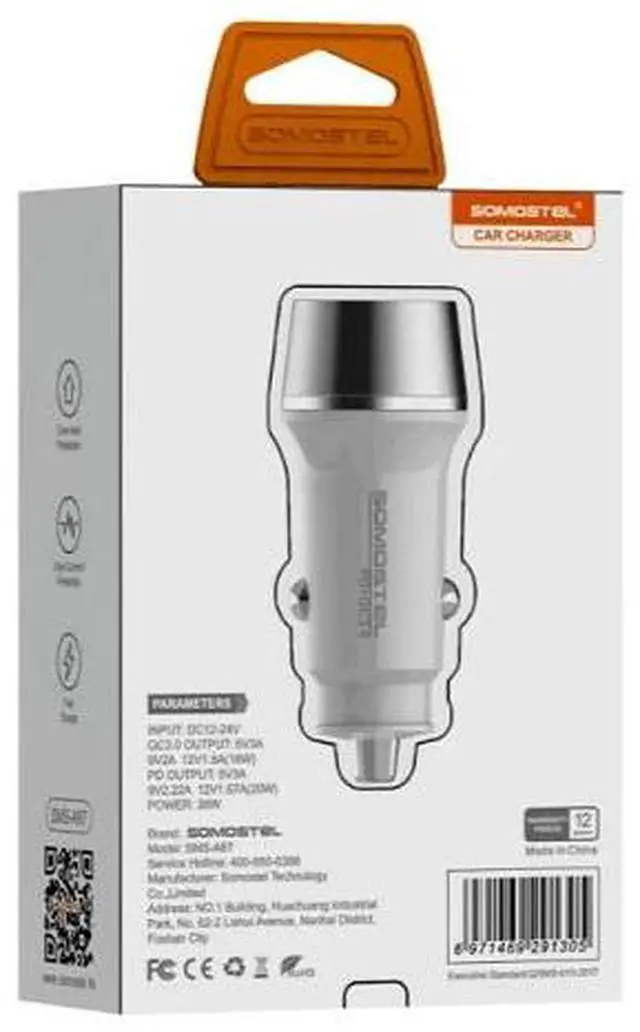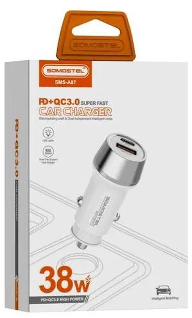 Somostel 38W DUAL PD+ QC3.0 / 5V3A USB-C Car Vehicle Adapter Charger WHITE