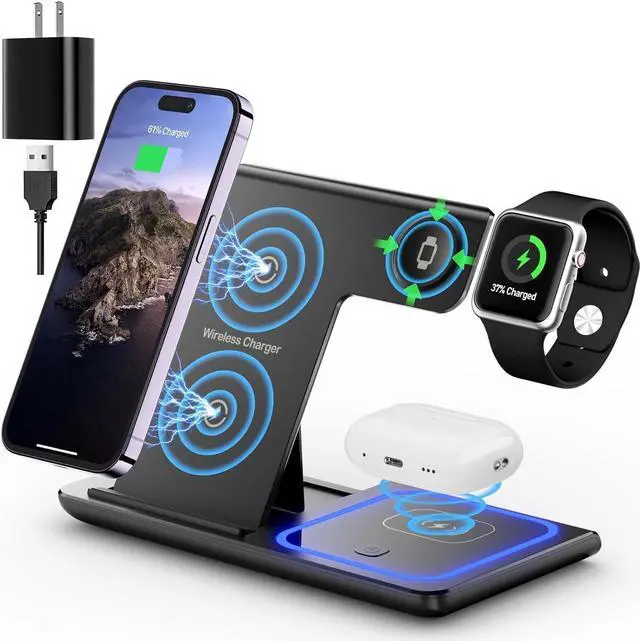 3-in-1 Wireless Charging Station for multiple iphones, iwatches, ipods , it is your good companion in your life!