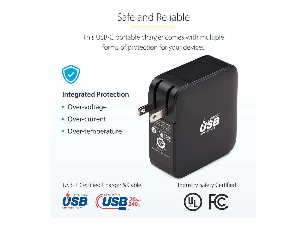StarTech 140W USB-C Wall Charger, USB-IF Certified, Single USB-C