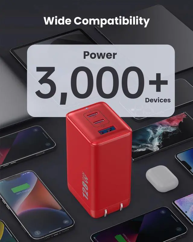 Efficient Charging & Wide CompatibilityThis 3 Port GaN III charger is able to charge 1 laptops and 2 smartphones/tablets at the same time. All ports support (quick charge) agreement, its compatible for MacBook Pro/Air, iPhone 14, iPhone 13 or previous models, iPad Pro/Air, Galaxy S10 or previous models, Google Pixel, Dell XPS, Switch, and more.