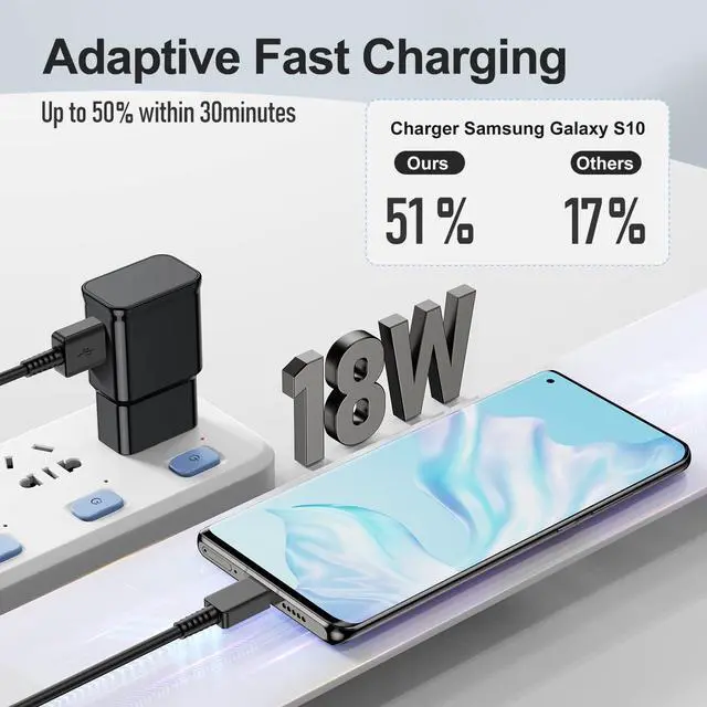 [Samsung Galaxy Charger Fast Charging]: TO Charger Samsung Galaxy S10, the adaptive fast charger can charge it from 0% to 51% in just 30 minutes, 3 times faster than the standard charger.