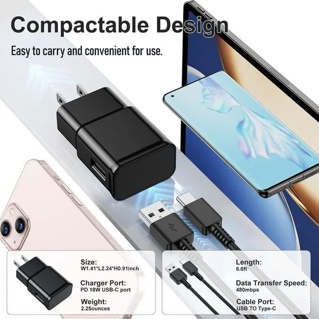 Compatibility]: Android Charger compatible with Samsung Galaxy S10/S10+/S10e/S9 Plus/S9/S8/S8 Plus/Note 10/Note 9/Note 8/A50/A20/A12/A11/A10 S8, S8 Plus, S9, S9 Plus, S10, S10+, S10e, S20, S20+, S20 Ultra, S21, S21+, S21 Ultra, S22, S22+, S22 Ultra, Note 8, Note 9, Note 10, Note 20, LG, G5, G6, G7, V20, V30, ThinQ Plus and other USB Type C devices.