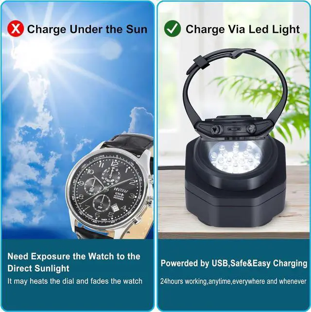 OUR SOLAR WATCH CHARGER IS TRUSTED BY OVER 300, 000 SATISFIED CUSTOMERS FROM USA AND JAPAN. Rated 4.5 out of 5 stars on and Rakuten, our solar watch charger uses multiple UV-free LEDs to evenly distribute light over your sophisticated solar watch panel, preventing fading, overheating, and ensuring optimal charging performance. Fast and safe charging for your solar watch with 40, 000 LUX light - no sunlight needed.