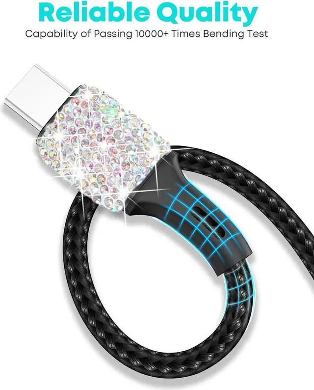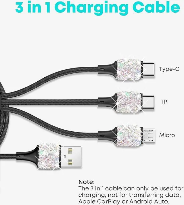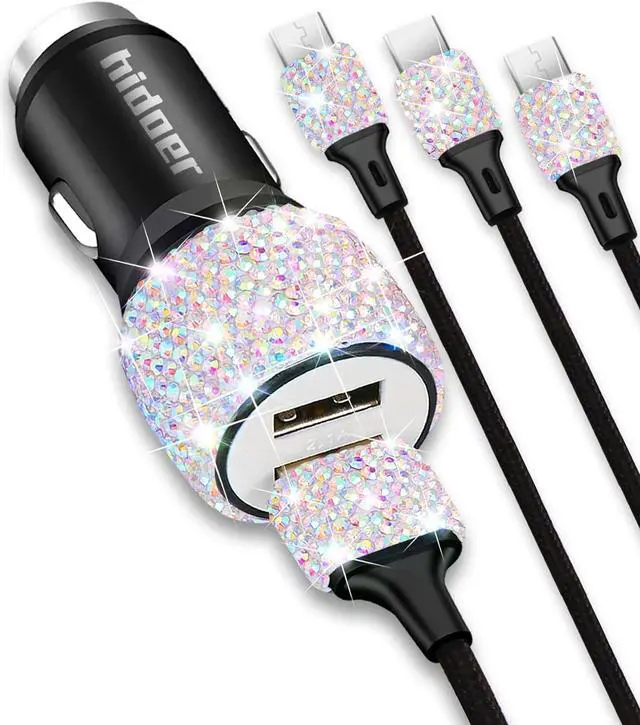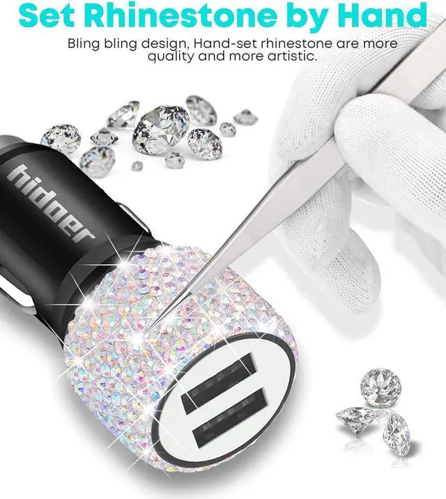 Crystal Design]: Car Charger and charging cable with rhinestones, sparkling and more stylish, it' s a very bling cute car accessories for women, men.