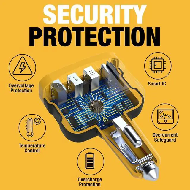 Simultaneous Charging Car USB charger fast-charging ports deliver 60W of available power and enables 4 USB devices to charge at the same time