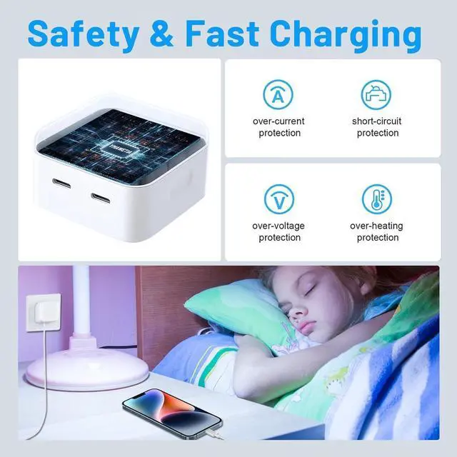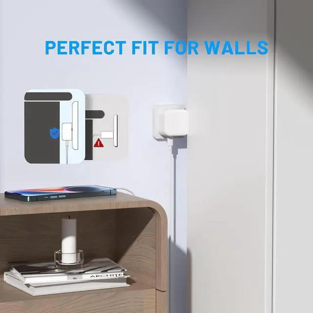 Small Size, Big PowerCompared to other wall charger plugs, this Dual Type-C Charger Quick Charge Block can charge devices behind most furniture like sofas, beds and nightstands. The compact size, foldable plug, neat and lightweight design make this 35W Dual USB-C Power Fast Charger the perfect travel companion, handy at home, in the office, and on vacation.