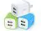Phone Block size: 3.2 * 3.2 cm. Every weight is 30g. It' s lightweight, Compact and easily portable. 3 Pack double port usb wall Chargers. You can place one in your office, one at home, and one on your car, or you can also share with your family and friends.