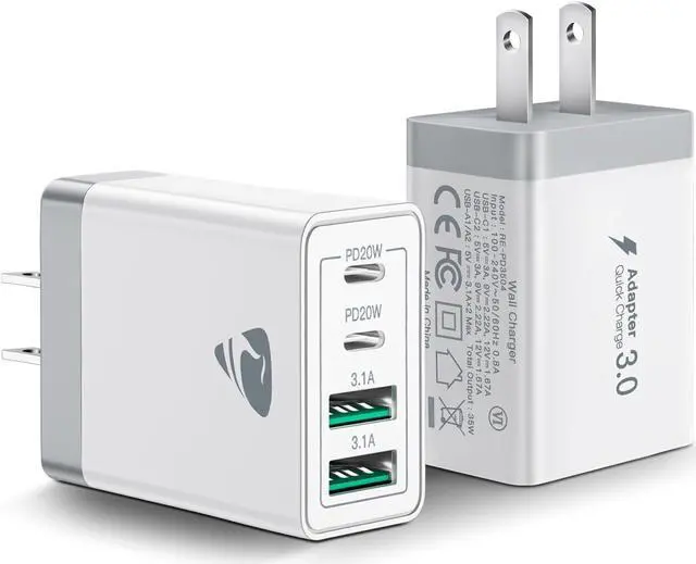 Compact and Portable: It takes up no space and is comfortable to carry. Aiminu 2Pack 40W 4-Port USB C Wall Charger White (cable not included) with 18 Months Worry-free Replacement and 24/7 Online Customer Service. If you have any questions, please feel free to contact us.