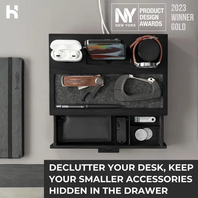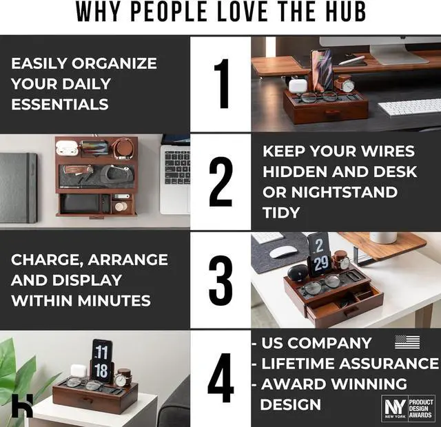 DECLUTTER YOUR LIFE No more tangled wires or frustration charging your devices. This sleek wood phone docking station and drawer combination is a step above when it comes to keeping your cords & chargers hidden away and secure. Your nightstand or desk stays clean and tidy, and you always wake up to fully charged devices.